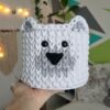 Horgolt maci tároló, 100%-ban újrahasznosított pamut zsinórfonalból. Kézműves termék!