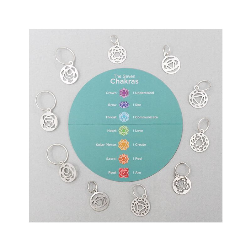 Gyönyörő, minőségi KnitPro termék, a Mindful kollekció része. 10 db különböző méretű, ezüstözött chakra szemjelölő szövettokban.