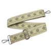 Zöld színű, geometriai mintás, rojtos szövött hevederből készült táskapánt.